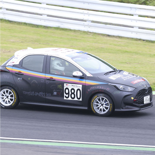 ヤリスカップへは社員ドライバー・社員エンジニアのオール宮城トヨタで参戦。レースを通してさまざまな経験を積み、お客様へのサポート体制づくりを進めている。